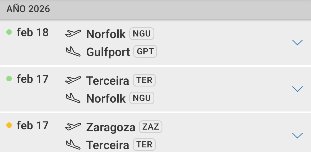 El trayecto de los dos A400 hasta Gulport en Misisipi (EEUU) ha sido Zaragoza-Terceira (Azores)-Norfolok.