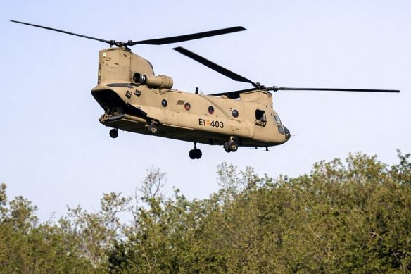 Un helicóptero SH-60F trasladando al SACEUR durante su visita al JCI desde la Base Naval de Rota. (Imagen: @EMADmde)