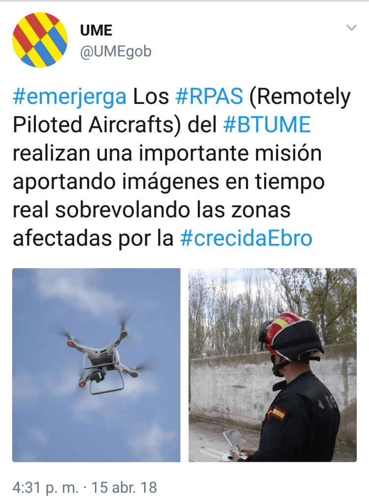 RPAS PHANTOM II Publicado el 20/04/2018 a 1080 × 1475 en RPAS PHANTOM II RPAS PHANTOM II utilizado por la UME Descubre más desde AERONAVES MILITARES ESPAÑOLAS Suscríbete y recibe las últimas entradas en tu correo electrónico. Escribe tu correo electrónico… Suscribirse Comparte esto:Entrada Compartir en WhatsApp (Se abre en una ventana nueva) WhatsApp Enviar un enlace a un amigo por correo electrónico (Se abre en una ventana nueva) Correo electrónico Imprimir (Se abre en una ventana nueva) Imprimir Me gusta Cargando...