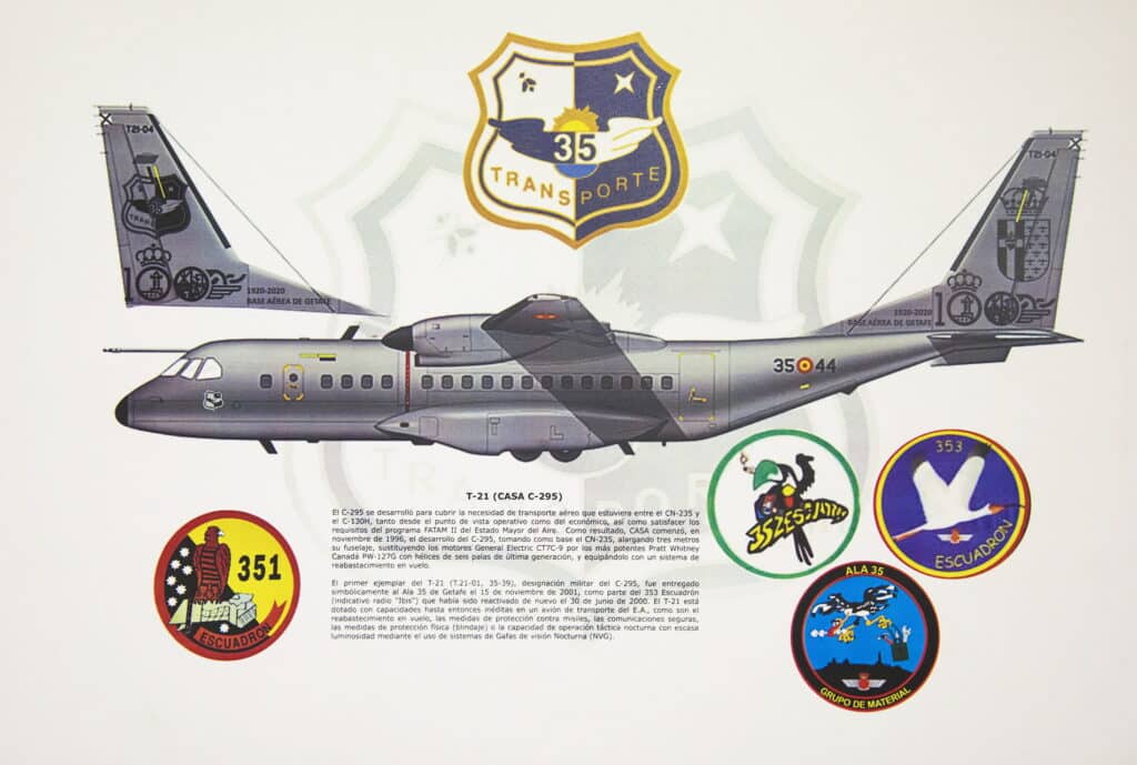 El Ejercito del Aire ha mostrado en una de sus redes sociales una fotografía de un C-295. (T.21) donde se puede observar en la deriva vertical de la aeronave, una rotulación especial conmemorativa al primer centenario de la Base Aérea de Getafe, en el que esta integrado el escudo de la ciudad. Dentro de los actos conmemorativos del centenario de las cuatro primeras bases aéreas (Getafe, Tablada, León y Zaragoza) que se celebra este año. El Ejercito del Aire ha tenido el detalle de pintar un T.21 matricula T.21-02 / 35-02 perteneciente al Ala 35. Inaugurando tal acontecimiento en un vuelo logístico de Getafe-Sevilla-Melilla.
