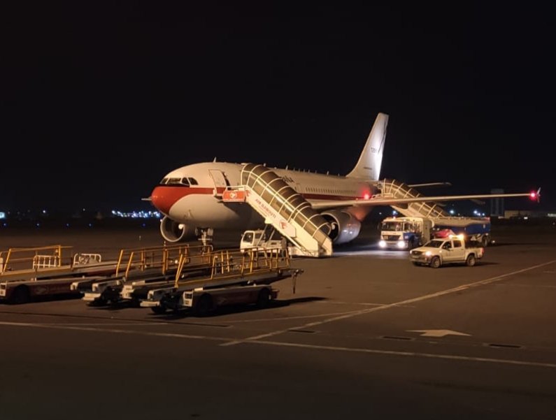 El A-310 del 45ºGrupo de FFAA en el aeropuerto de Yibuti que traslado al relevo del 39º Contingente del DAT Orion (Foto: @EMADmde)