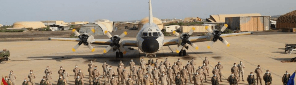 Nuevo contingente en el Destacamento orión del Ejercito del Aire, ante el avión P-3 destacado en Yibouti. (Imagen: @EMADmde)
