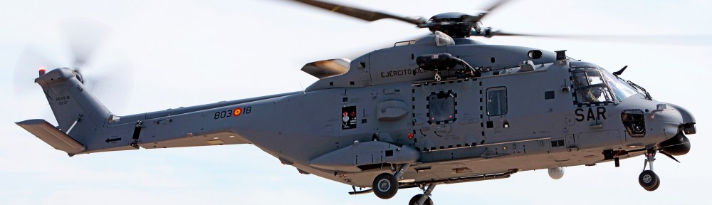 El 28 de mayo despegaba de la factoría de Airbus Helicopters con sede en Albacete el tercer NH-90 del Ejercito del Aire. A este aparato le ha correspondido la matricula HD.29.18 10237 / 803-18 pertenece también al estándar 2 ( como los dos entregados anteriormente) y con numero de serie 1444. Durante su viaje a su nuevo hogar en la base aérea de Cuatro Vientos sede del Ala 48 fue acompañado por los otros dos NH-90 con los que cuenta ya la citada unidad. El 803-16 y el 803-17. Como se puede ver en las estupendas fotos de Pablo Rada en su pagina de Flickr desde la plataforma de Airbus despegaron los tres aparatos en perfecta formación. Ya a primeros de mayo también en la citada pagina se pueden ver unas fotos en las que se ve con detalle como a este aparato se le ha probado las diferentes configuraciones como la de una grúa de rescate sobre el costado derecho, así como la torreta con el sistema FLIR sobre el costado izquierdo.
