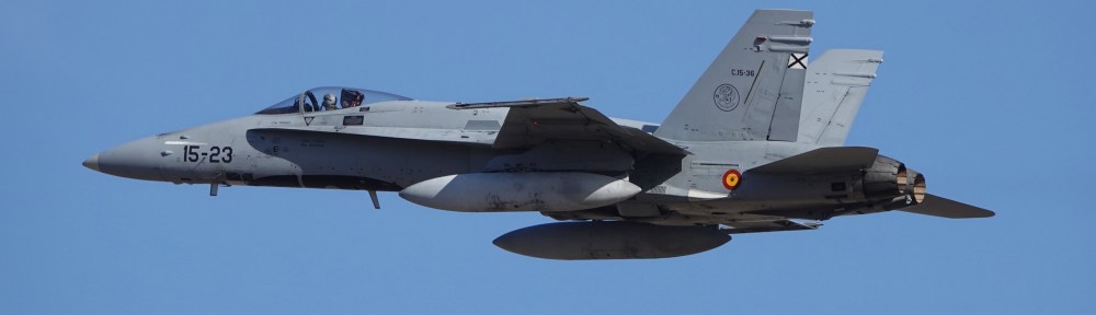 Jornada de Spotting realizada a media mañana, aterrizajes por la 30R y 30L. En algunas imágenes de F-18 se puede observar como llevaban bajo el ala el dispositivo de enganche de las bombetas inertes para las practicas de tiro aire-suelo a desarrollar en el Polígono de Tiro de las Bardenas en Navarra.