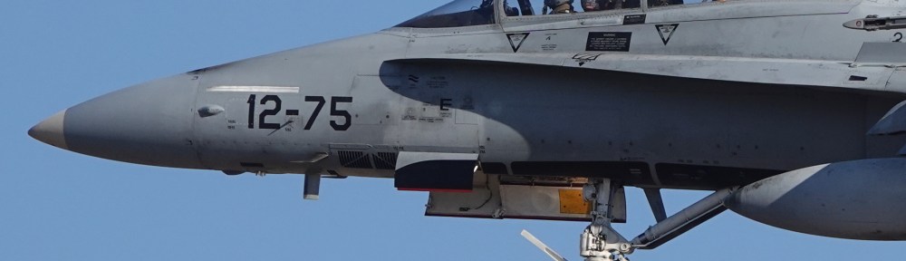 Jornada de Spotting realizada a lo largo de la mañana, aterrizajes por la 30R. En algunas imágenes de F-18 se puede observar como llevaban bajo el ala el dispositivo de enganche de las bombetas inertes para las practicas de tiro aire-suelo a desarrollar en el Polígono de Tiro de las Bardenas en Navarra, así como las citadas bombetas inertes y misil inerte.
