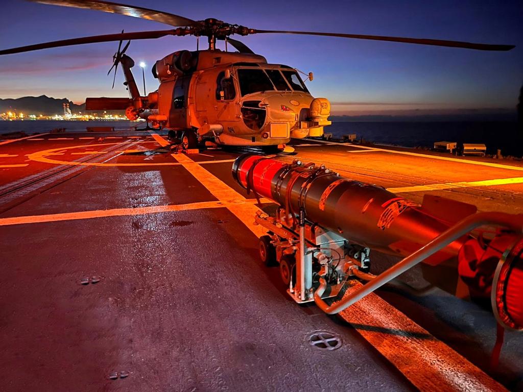 Un helicóptero SH-60B Seahawk perteneciente a la 10ª Escuadrilla de la FLOAN (Flotilla de Aeronaves) participo junto a otros medios navales en un ejercicio de lanzamiento de torpedos en el mediterráneo.