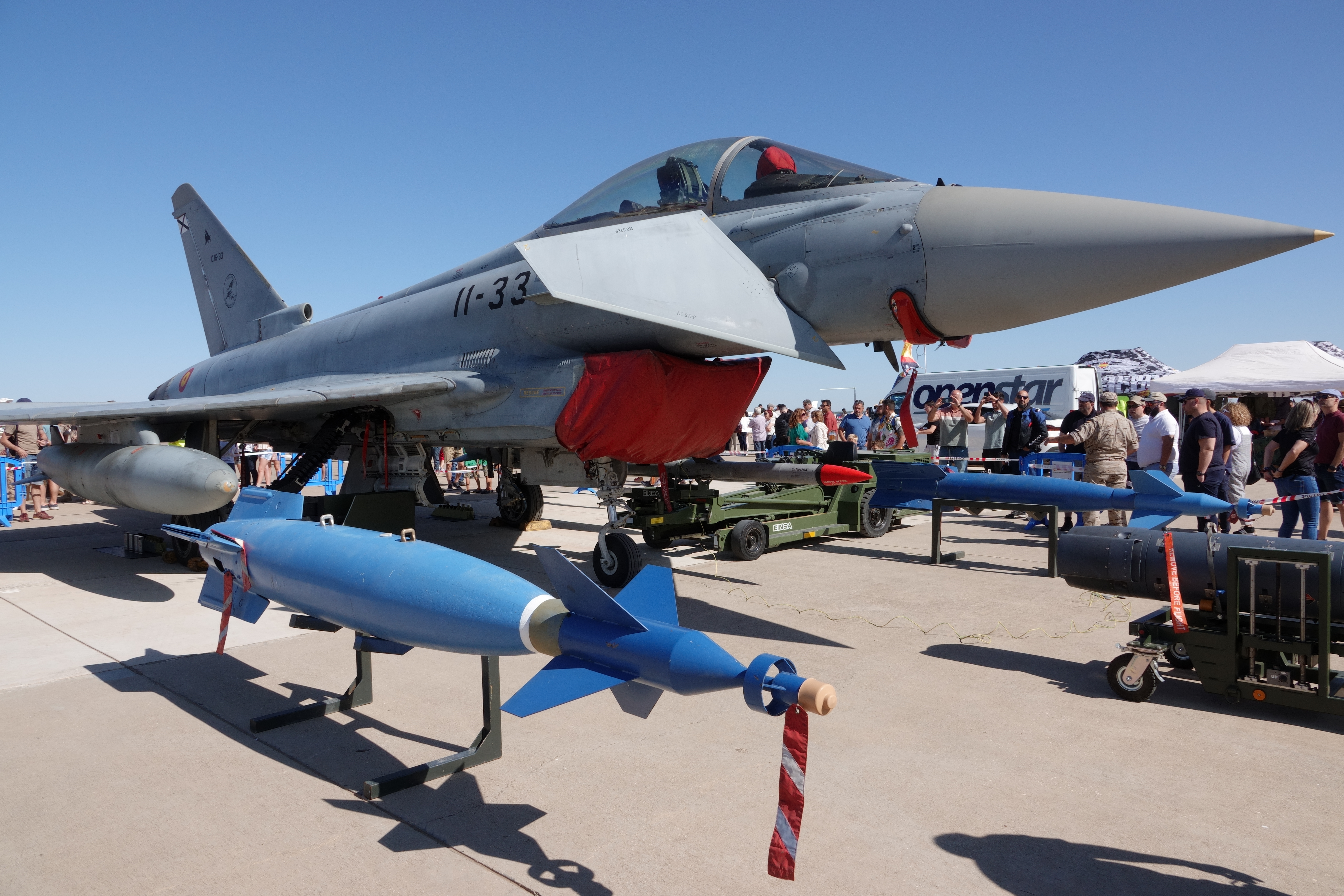 CE.16-03/11-03 uno de los Eurofighter biplazas del Ala 11. (Imagen: Fco Javier Chao)Eurofighter (C.16-33 / 11-33) con diferente armamento y el Pod de designación de objetivos litening. (Imagen: Fco Javier Chao)En la imagen en primer termino un designador de objetivos Pod litening Rafale. (Imagen: Fco javier Chao)El Eurofighter (C.16-43 / 11-43) saliendo de uno de los refugios (shelters) camino a la cabecera (Imagen: Fco Javier Chao)El Eurofighter (C.16-63 / 11-63) con el aerofreno activado saludando al personal mientras se dirige a la cabecera. (Imagen: Fco Javier Chao)Uno de los cuatro Eurofighter C.16 que luego participarían en la exhibición esperando en su refugio (Shelters) Imagen: Fco Javier ChaoEurofighter (CE.16-06 / 11-06) Imagen: Fco Javier ChaoLos dos protagonistas del evento. El pasado (P.3M-08/22-31) del 22º Grupo y uno de los C.16 del 11º Grupo del Ala 11. (Imagen: Fco Javier Chao)Todo preparado, pilotos y mecánicos de la Patrulla Aspa con sus helicópteros Ec-120 Colibri. El helicóptero Ec-120 Colibrí de la Patrulla Aspa con base en Armilla (Granada) Imagen: Fco Javier ChaoDetalle del Ec-120 (HE.25) Imagen: Fco Javier Chao