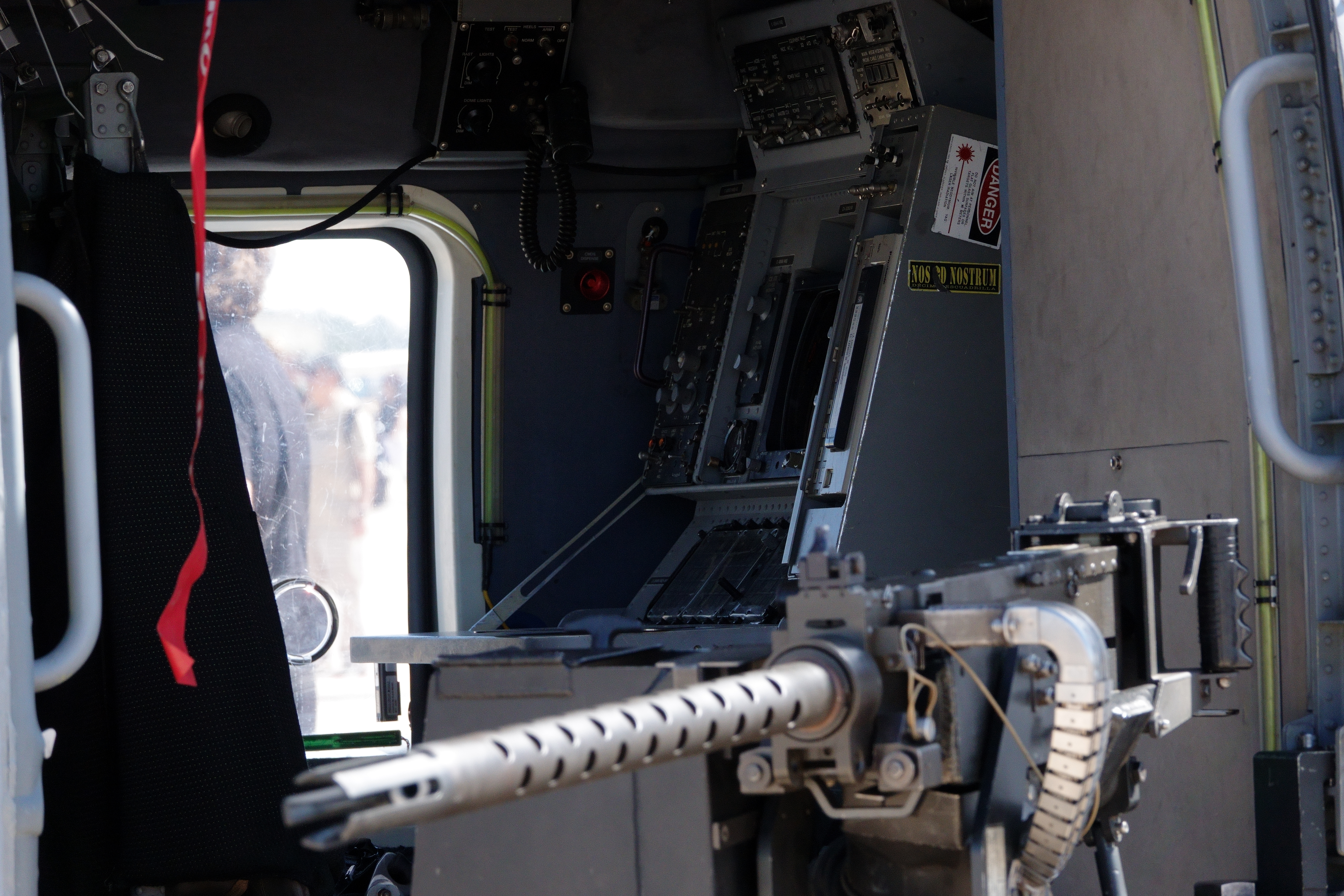 Interior del SH-60B donde se puede observar el puesto del Operador de Sistemas. En el exterior la GAU-16 de 12,7mm (Imagen: Fco Javier Chao)