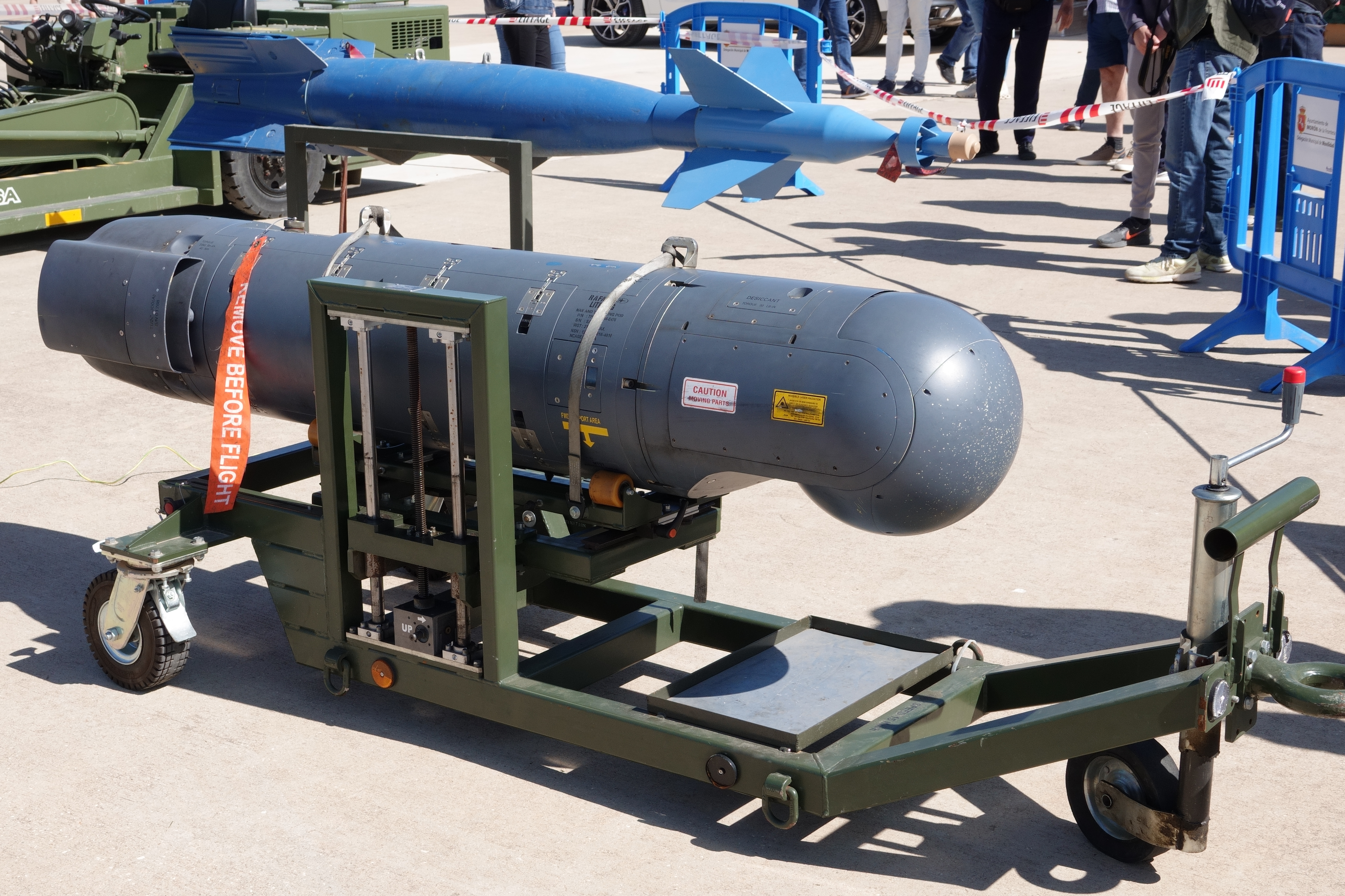El AV-8B+ Harrier (VA.1B-26 / 01-916) estacionado junto a uno de los Eurofighter.(Imagen: Fco Javier Chao) Frontal del AV-8B Harrier donde se puede apreciar bajo sus alas diferente armamento que puede portar. De dentro a fuera podemos observar el AGM-65 Maverik, AIM-120 y el AIM-9L Sidewinder. (Imagen: Fco Javier Chao)
