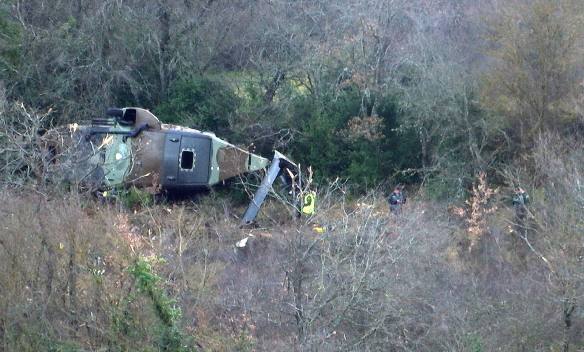 De los cuatro tripulantes del Ejercito de Tierra que viajaban en el helicóptero tres resultaron ilesos y uno sufrió una factura en una pierna el cual se encontraba hospitalizado a la espera de intervención quirúrgica. Tal y como se puede ver en las imágenes facilitadas por los medios se observa como el aparato quedo capotado sobre su lado derecho, sin llegar a incendiarse, por lo que es posible que se intentara hacer una toma controlada en una pequeña explanada entre los arboles. El accidente, del que informó el piloto al SOS Rioja, se produjo hacia las 21:36 horas en el término conocido como ‘Espinado’, una zona boscosa, situada a 1,5 kilómetros del casco urbano de Torrecilla en Cameros, que se encuentra a unos 30 kilómetros de Logroño.