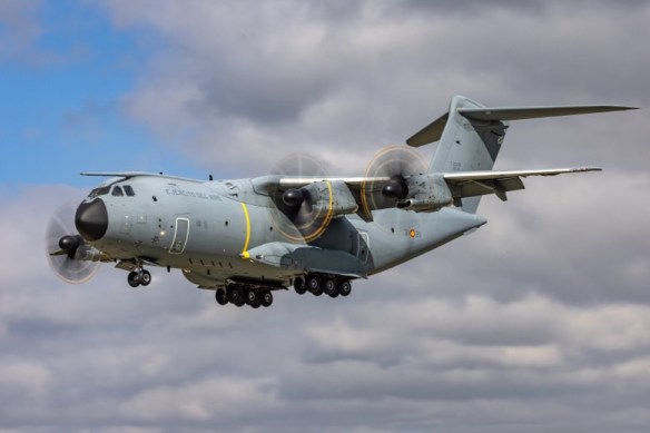 El A400 (T.23-01/31-21) del Ala 31 de Zaragoza que traslado al personal del Ala 12 desde Torrejón a la BA de Marham el 26 de marzo con indicativo » AME3132«. (Imagen: RAF)