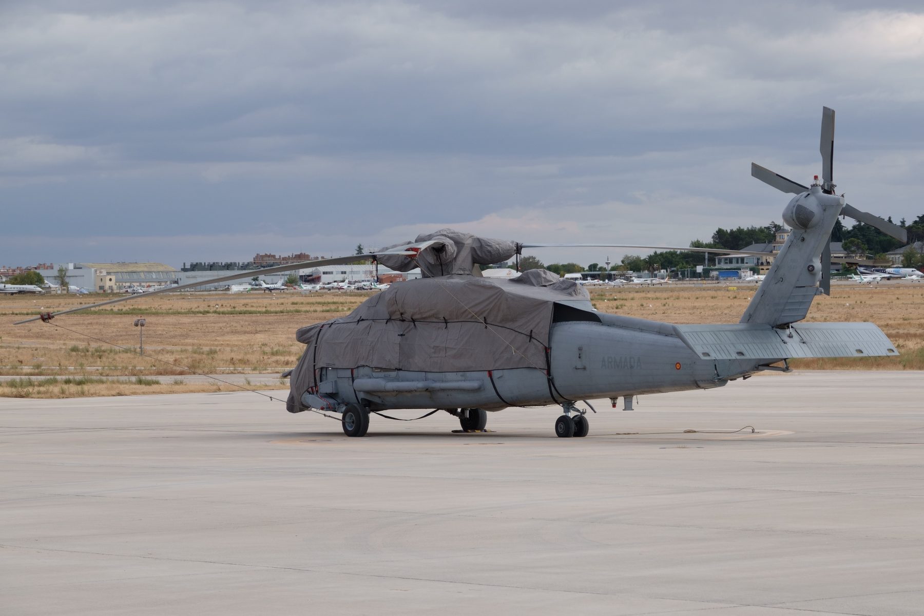 Fotografías de los helicópteros del Ejercito del Aire y del Espacio y de la Armada que se encontraban desde el día 11 en la Base Aérea de cuatro Vientos desde donde participarían al día siguiente en el desfile aéreo de la Fiesta Nacional.
