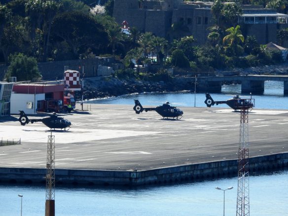 Aunque su presencia se esperaba para el día 25, debido a las malas condiciones climatológicas tuvieron que suspender su llegada hasta el día de hoy. Es a partir de las 9 de la mañana cuando los cinco aparatos en formación tras cruzar el estrecho desde la península en un vuelo de navegación VFR aterrizaron en Ceuta. Tres aterrizaron en el helipuerto civil perteneciente a AENA y situado en el puerto de Ceuta y los otros dos en el helipuerto militar dependiente del Acuartelamiento Serrallo-Recarga.