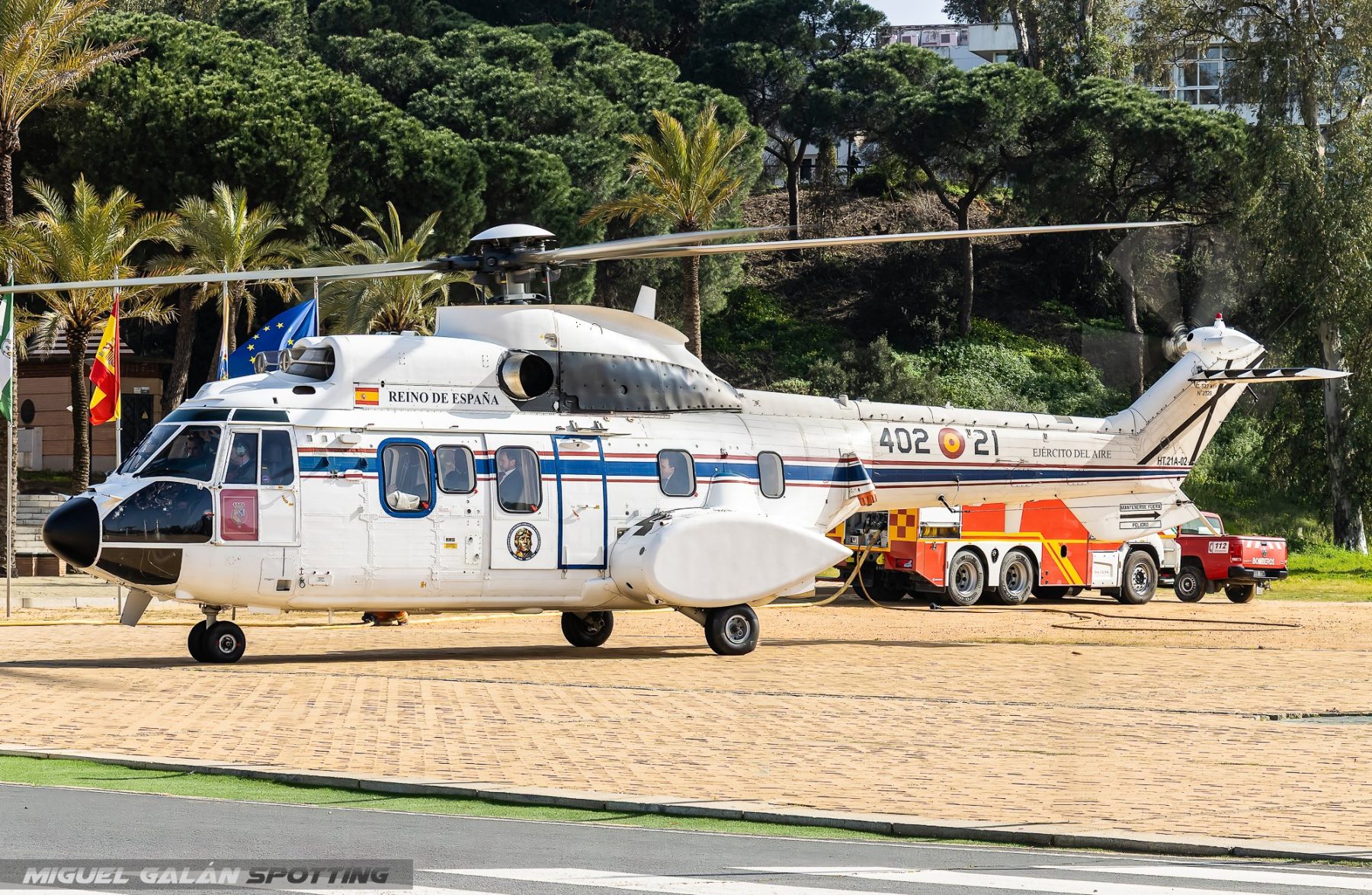 El Super Puma fotografiado en la Rabida (Huelva) en visita de SM el Rey. (Imagen: @OzpSvlSpott)