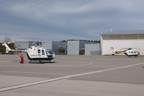 Dentro del hangar se pudieron observar dos AS365 Dauphin ( HU.30-01/09-401 y HU.30-03/09-403), nueve EC-135/H135 (HU.26-19/09-313, HU.26-06/09-304, HU.26-31A/09-317, HU.26-03/09-308, HU.26-05/09-303, HU.26-43A/09-321) y dos Bö-105 (HU.15-89/09-117 y HU.15-69/09-128).
