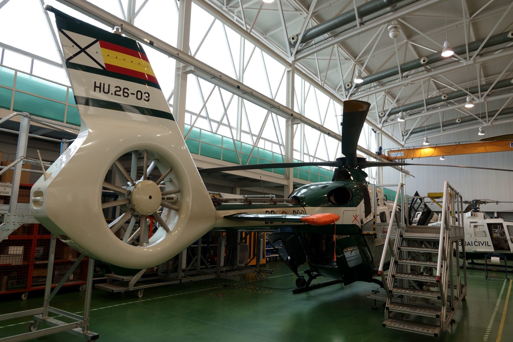 Dentro del hangar se pudieron observar dos AS365 Dauphin ( HU.30-01/09-401 y HU.30-03/09-403), nueve EC-135/H135 (HU.26-19/09-313, HU.26-06/09-304, HU.26-31A/09-317, HU.26-03/09-308, HU.26-05/09-303, HU.26-43A/09-321) y dos Bö-105 (HU.15-89/09-117 y HU.15-69/09-128).