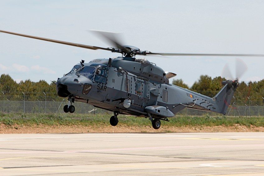 El nuevo NH-90 para el EdA donde se le puede observar sobre el costado izquierdo la disposición de la torreta FLIR. Antes de ser entregado. (Foto: Pablo Rada)