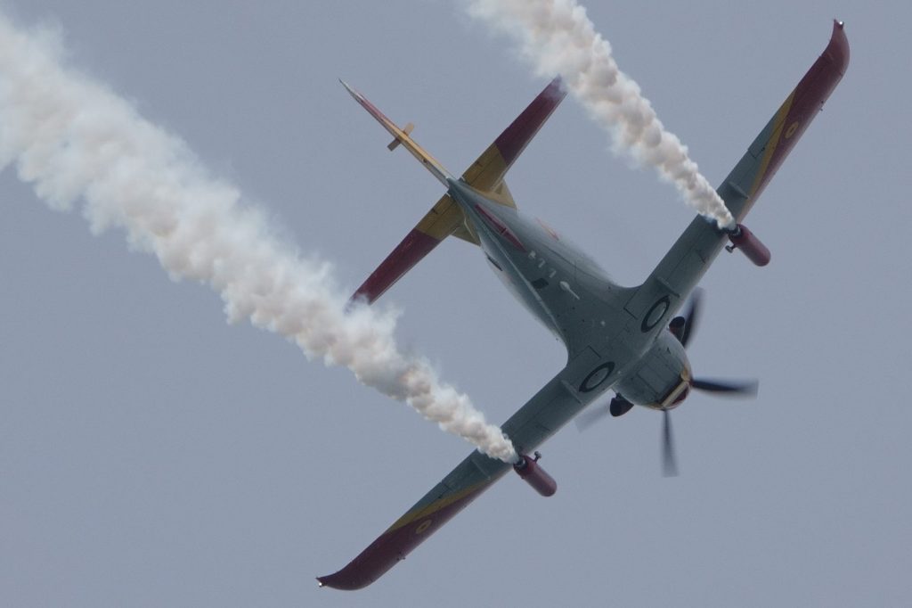 Los Pc-21 Pilatus portarán unos dispensadores (como los de la imagen) de humo que simularán los colores de la bandera nacional (Imagen: Fco Javier Chao)