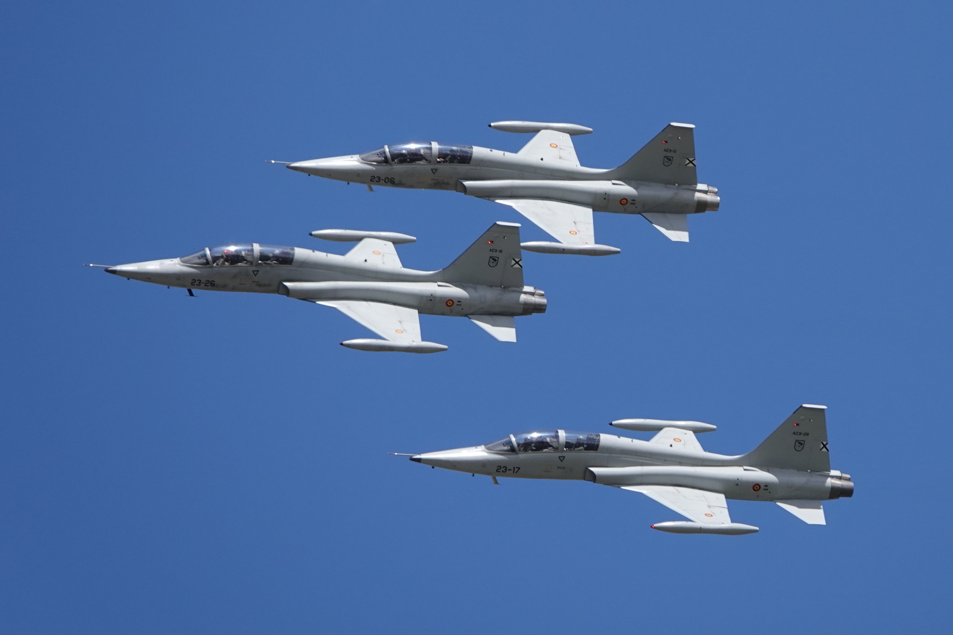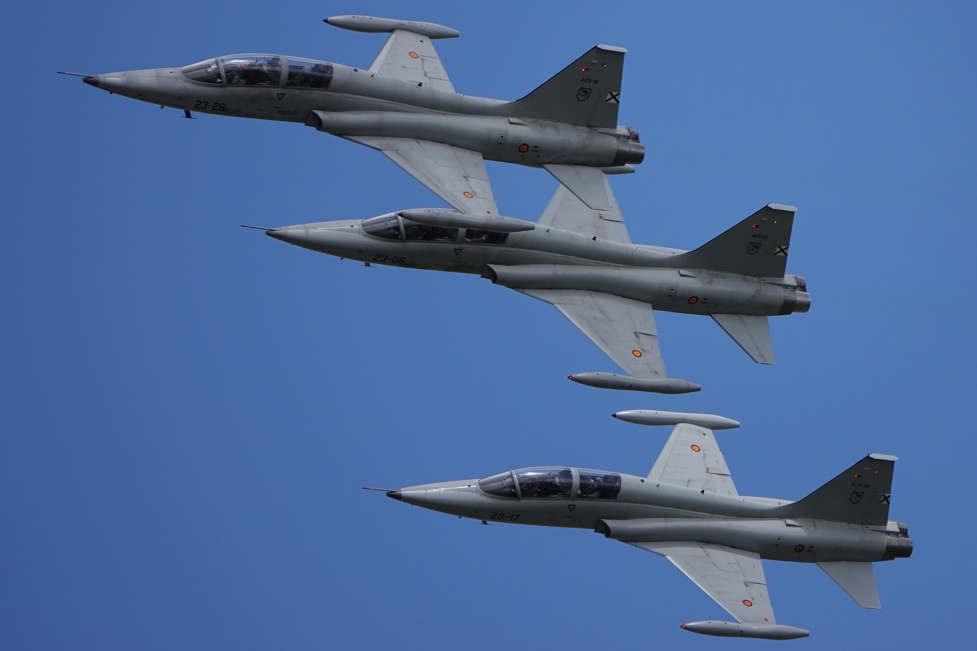 Aeronaves que se pudieron ver en la plataforma: F-5M, EF-18M, Eurofighter, Pilatus PC-21 y el Rpas MQ-9 Predator.