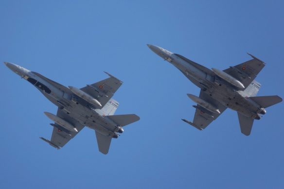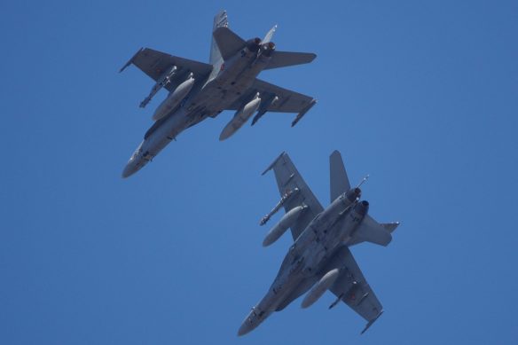 Formación de EF-18M (C.15-47/15-31 y C.15-67/15-33) posteriormente romperían tras sobrevolar la 30R. (imagen: Fco javier Chao)