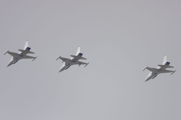 Formación de F/A-18 sobre la cabecera de la 30R antes de romper (Imagen: Fco Javier Chao)