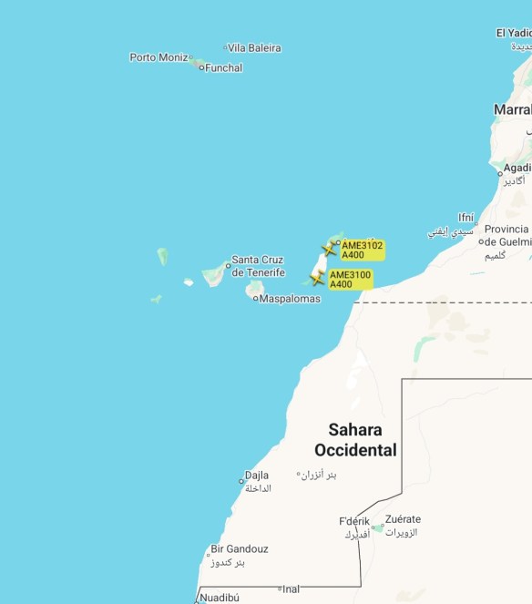 - 24 de enero @flightradar informa. Los dos A400 tras hacer escala en el aeropuerto de Espargos (Cabo Verde) se dirigen a Fortaleza (Brasil) donde tras realizar otra escala vuelan a Río de Janeiro.