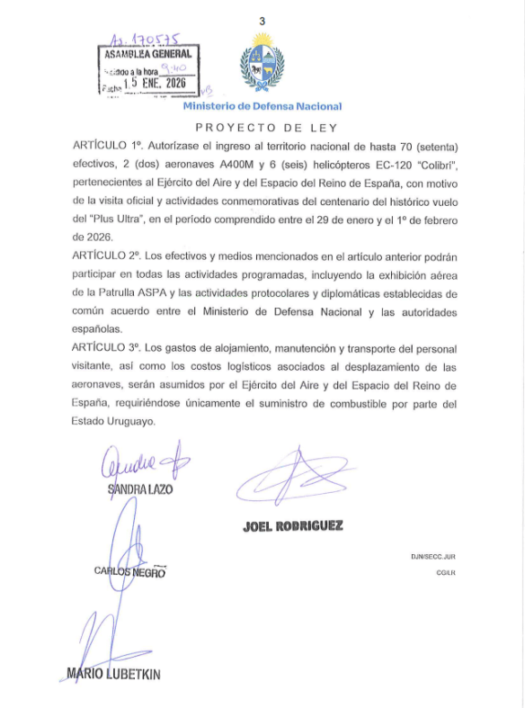 El despliegue tendrá lugar entre el 24 de enero y el 7 de febrero de 2026. En los tres países que se visitarán, la Patrulla Aspa tiene previsto realizar demostraciones aéreas. En Brasil será el 28 de enero en la playa de Ipanema en Río de Janeiro; en Uruguay será en el parque de la Rambla de Montevideo el 1 de febrero y en Argentina será en la Costanera de Buenos Aires en Aeroparque el 4 de febrero.