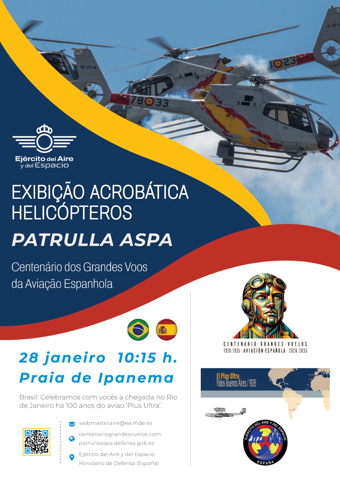 El despliegue tendrá lugar entre el 24 de enero y el 7 de febrero de 2026. En los tres países que se visitarán, la Patrulla Aspa tiene previsto realizar demostraciones aéreas. En Brasil será el 28 de enero en la playa de Ipanema en Río de Janeiro; en Uruguay será en el parque de la Rambla de Montevideo el 1 de febrero y en Argentina será en la Costanera de Buenos Aires en Aeroparque el 4 de febrero.