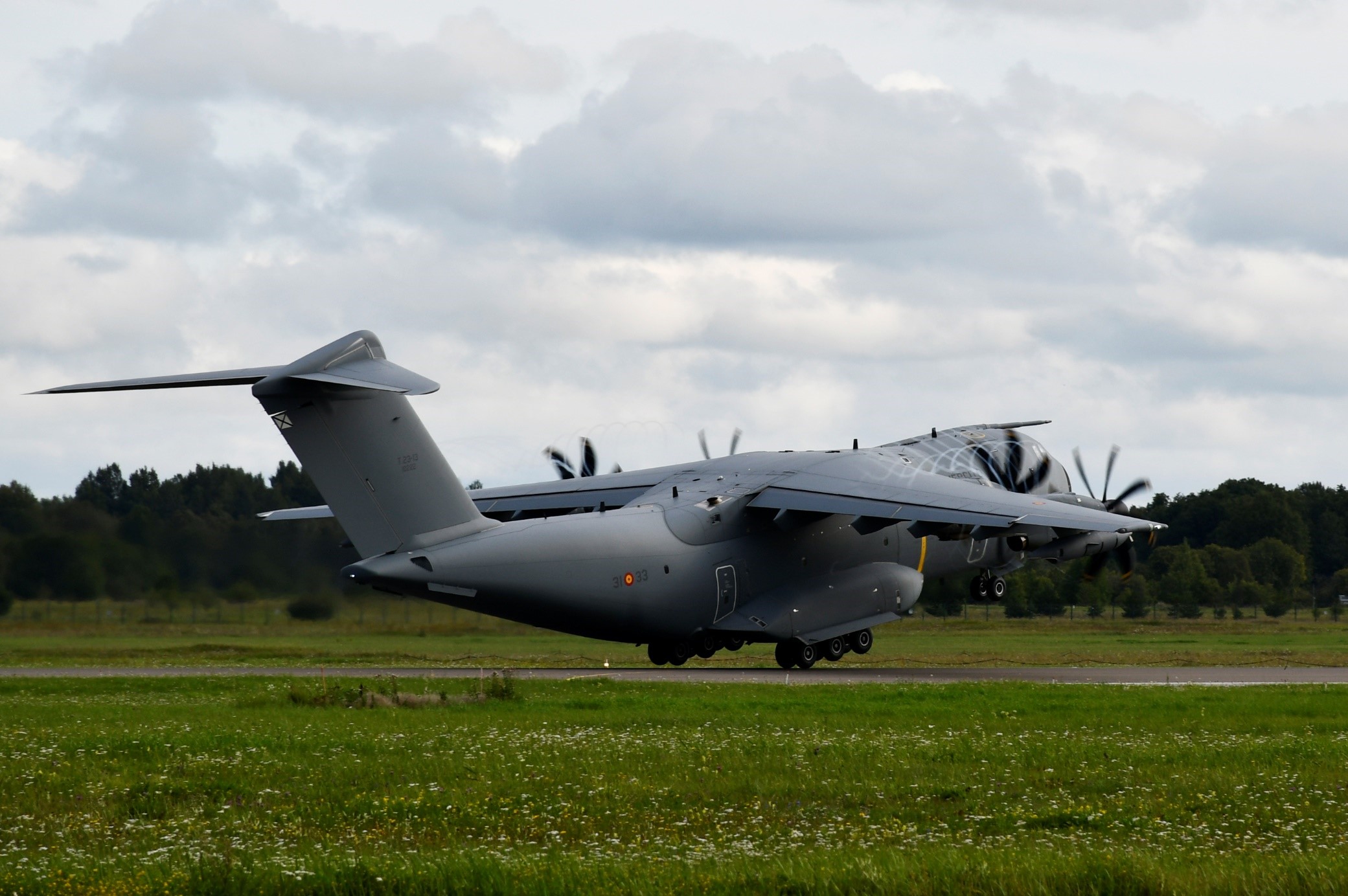 - 21 de septiembre el @Defensagob informa del primer despliegue de un A400 del EdA en la misión de Policía Aérea. El A400 desplegado tal y como se puede ver en las imágenes es el T.23-13 / 31-33