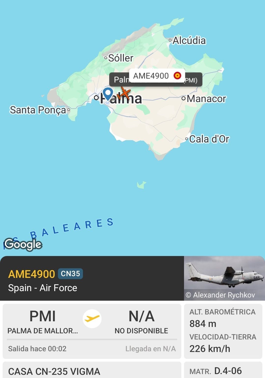 - 19 de marzo @flightradar24 monitoriza la salida desde Palma de mallorca al CN-235 con matricula e indicativo D.4-6/37-06 AME4900. Con destino a Yibuti para participar en el despliegue de la Operación Atalanta. Ahora que ha pasado el monzon.