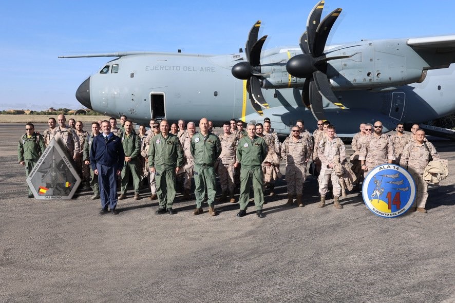 - 2 de febrero el @EMAD_mde informa de la nueva incorporación de un A400 (T.23-04/31-24) del Ala 31 de Zaragoza al Destacamento Paznic. Aumentando de esta manera la operatividad, disponibilidad y radio de acción de los Eurofighter gracias a la Capacidad de AAR por parte del A400.