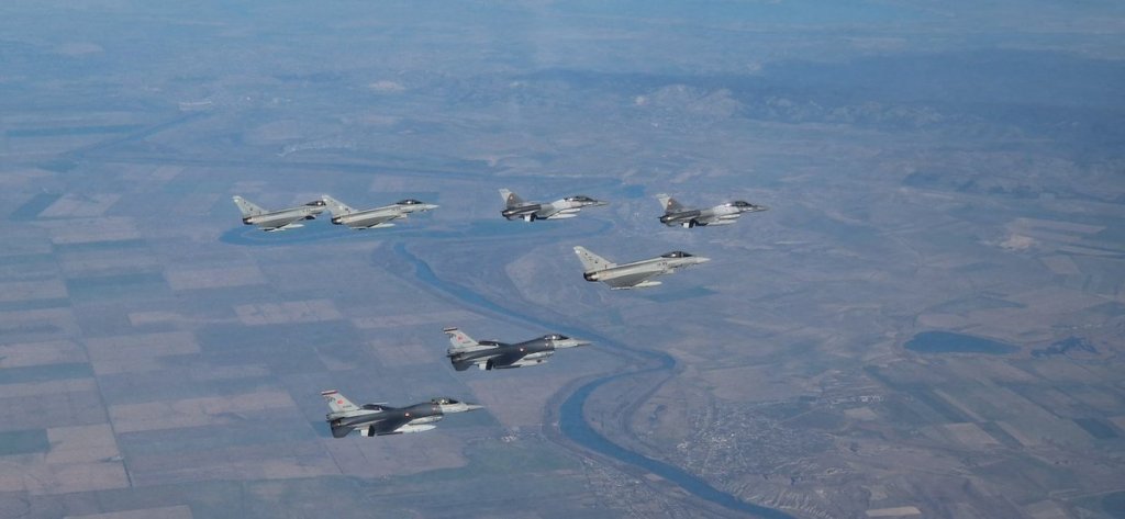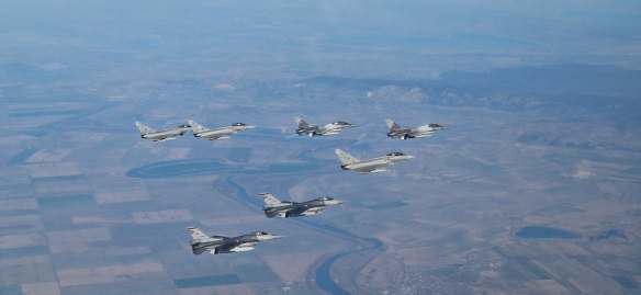 Los Españoles han dirigido una misión de combate aire-aire con aviones F-16 de la Fuerza Aérea de Rumanía, Grecia y Turquía.