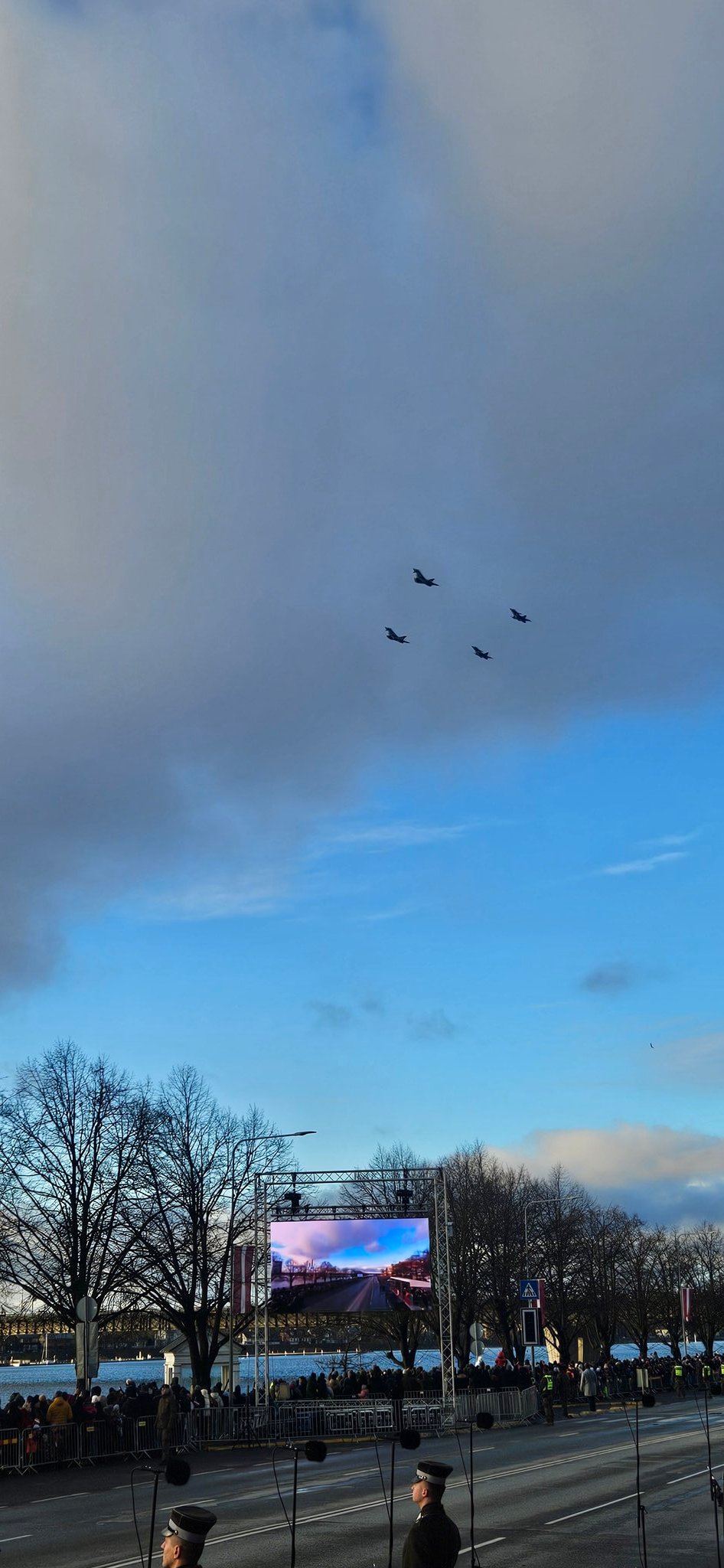 Desfile aéreo en el que se puede ver a los dos Eurofighter sobre los cielos de Riga.(Imagen: @EmbajadaEspRiga)