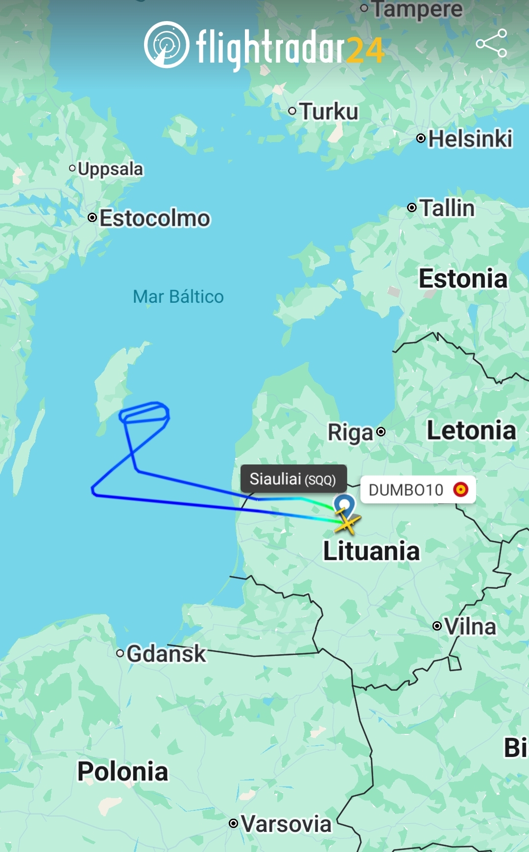 - 17 de septiembre @flightradar24 visualiza y monitoriza uno de los típicos vuelos de AAR (Reabastecimiento) que suelen llevar a cabo el A400 desplegado en Lituania.