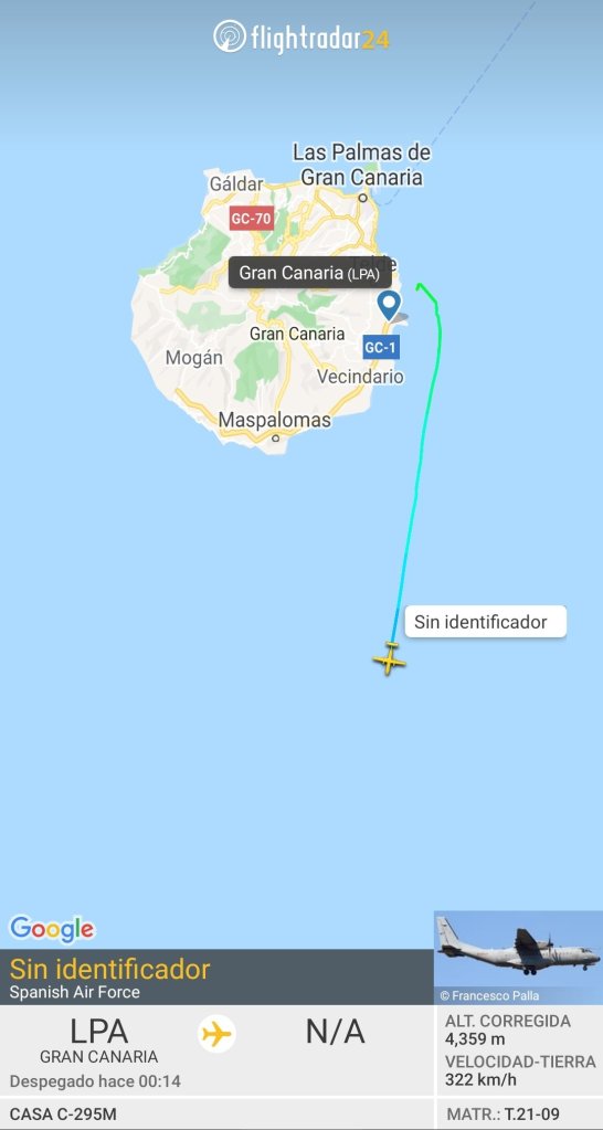 E4_eNzKX0AETdSq Publicado el 17/07/2021 a 1080 × 2025 en E4_eNzKX0AETdSq Avión C-295 (T.21-09/35-09) saliendo de Gando rumbo a Senegal. (@fligthradar24) Descubre más desde AERONAVES MILITARES ESPAÑOLAS Suscríbete y recibe las últimas entradas en tu correo electrónico. Escribe tu correo electrónico… Suscribirse Comparte esto:Entrada Compartir en WhatsApp (Se abre en una ventana nueva) WhatsApp Email a link to a friend (Se abre en una ventana nueva) Correo electrónico Imprimir (Se abre en una ventana nueva) Imprimir Me gusta Cargando...
