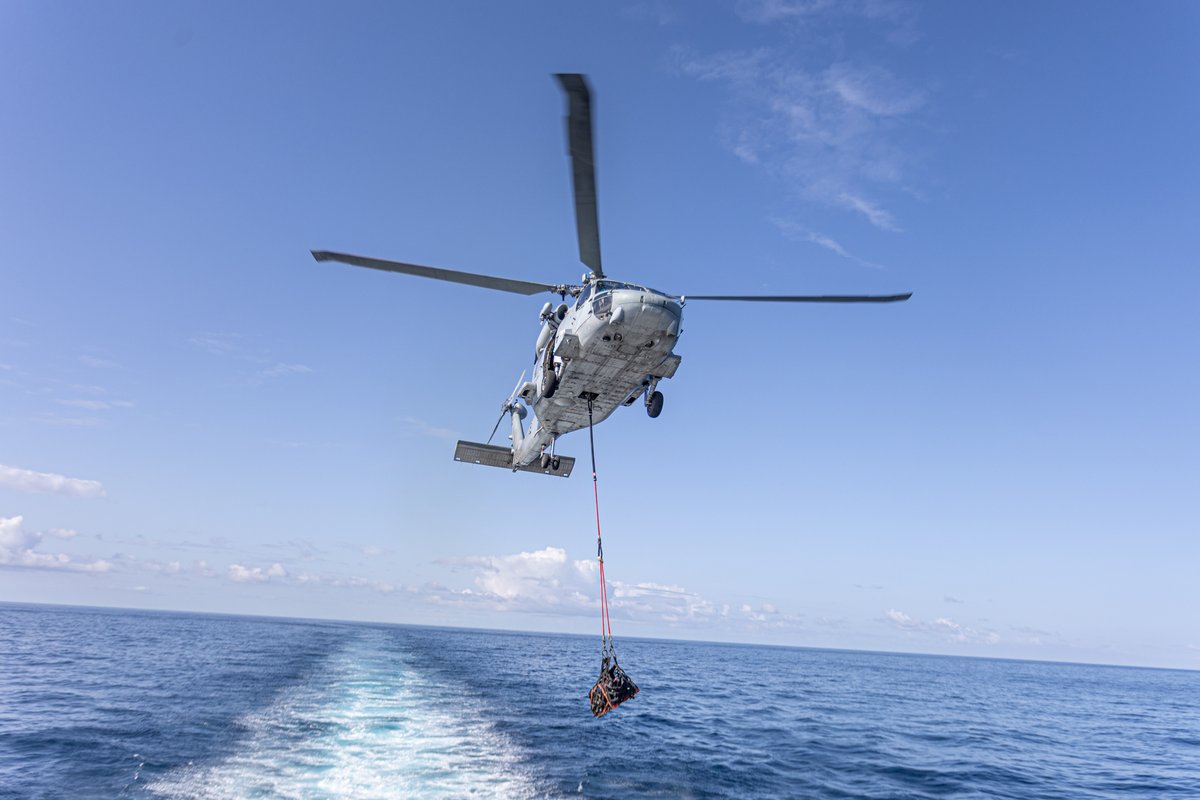 - 6 de febrero @EMADmde informa sobre el aprovisionamiento en la mar tanto por mar como por aire por parte de helicópteros SH-60F tal y como se puede ver en las imágenes facilitadas.