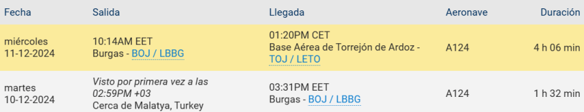 Captura de pantalla 2024-12-15 201341 Publicado el 15/12/2024 a 1116 × 215 en INHERENT RESOLVE Vuelo del A-124 con callsing ADB3888 que trajo a España alguno de los CH-47F (Imagen: flightaware) Comparte esto:Entrada Compartir en WhatsApp (Se abre en una ventana nueva) WhatsApp Enviar un enlace a un amigo por correo electrónico (Se abre en una ventana nueva) Correo electrónico Imprimir (Se abre en una ventana nueva) Imprimir Me gusta Cargando...