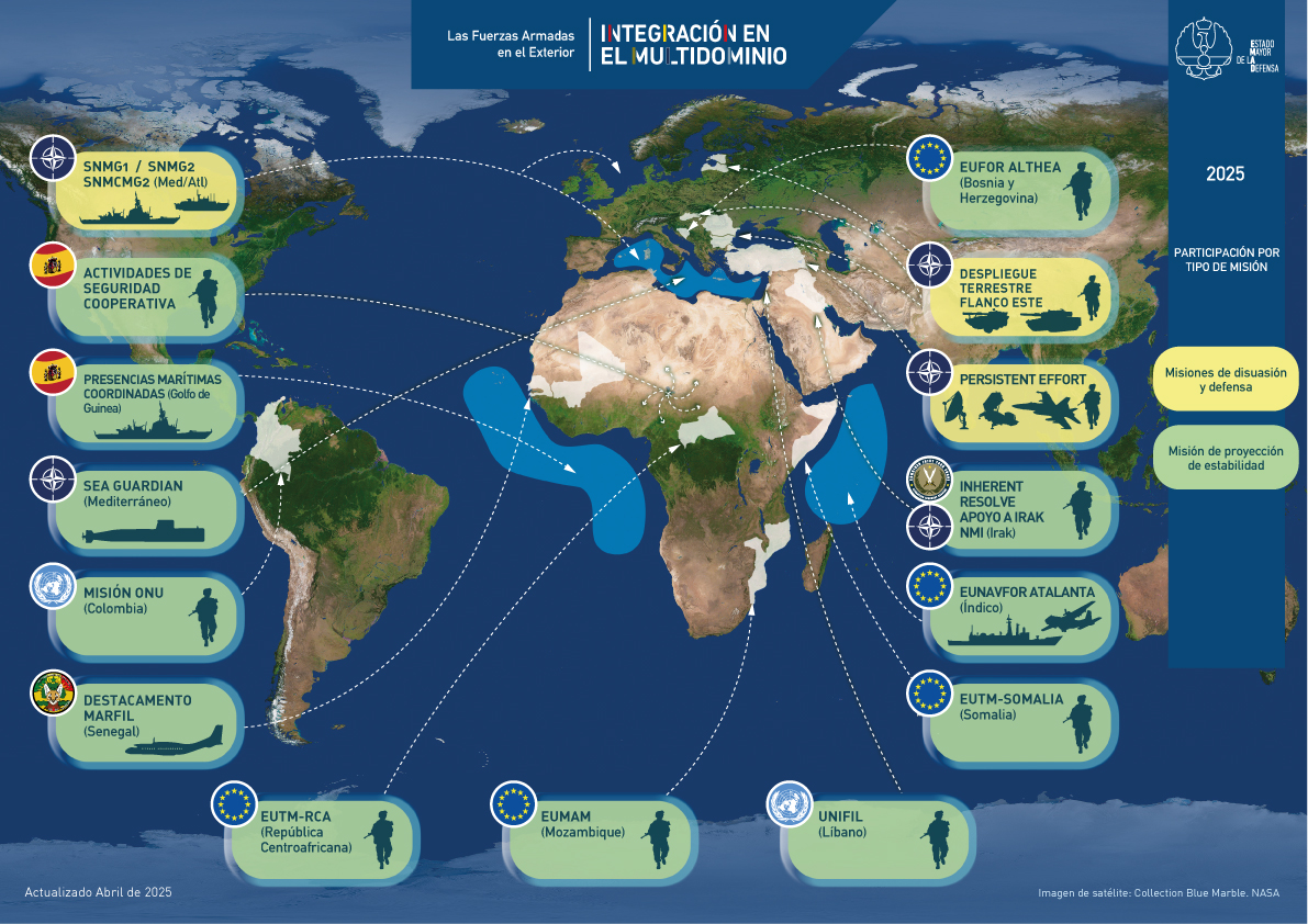 mapa-operaciones Publicado el 19/04/2025 a 1191 × 842 en MISIONES INTERNACIONALES Mapa operaciones en el exterior. Misiones Internacionales en las que participa España 2025 (Fuente: EMAD) Comparte esto:Entrada Compartir en WhatsApp (Se abre en una ventana nueva) WhatsApp Enviar un enlace a un amigo por correo electrónico (Se abre en una ventana nueva) Correo electrónico Imprimir (Se abre en una ventana nueva) Imprimir Me gusta Cargando...