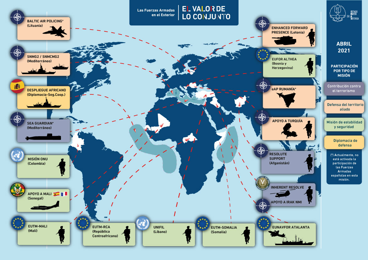 mapa-operaciones abril2021 Publicado el 15/04/2021 a 1171 × 828 en MISIONES INTERNACIONALES Presencia militar Española en el Exterior, abril 2021 (Infografia: EMAD) Comparte esto:Entrada Compartir en WhatsApp (Se abre en una ventana nueva) WhatsApp Enviar un enlace a un amigo por correo electrónico (Se abre en una ventana nueva) Correo electrónico Imprimir (Se abre en una ventana nueva) Imprimir Me gusta Cargando...