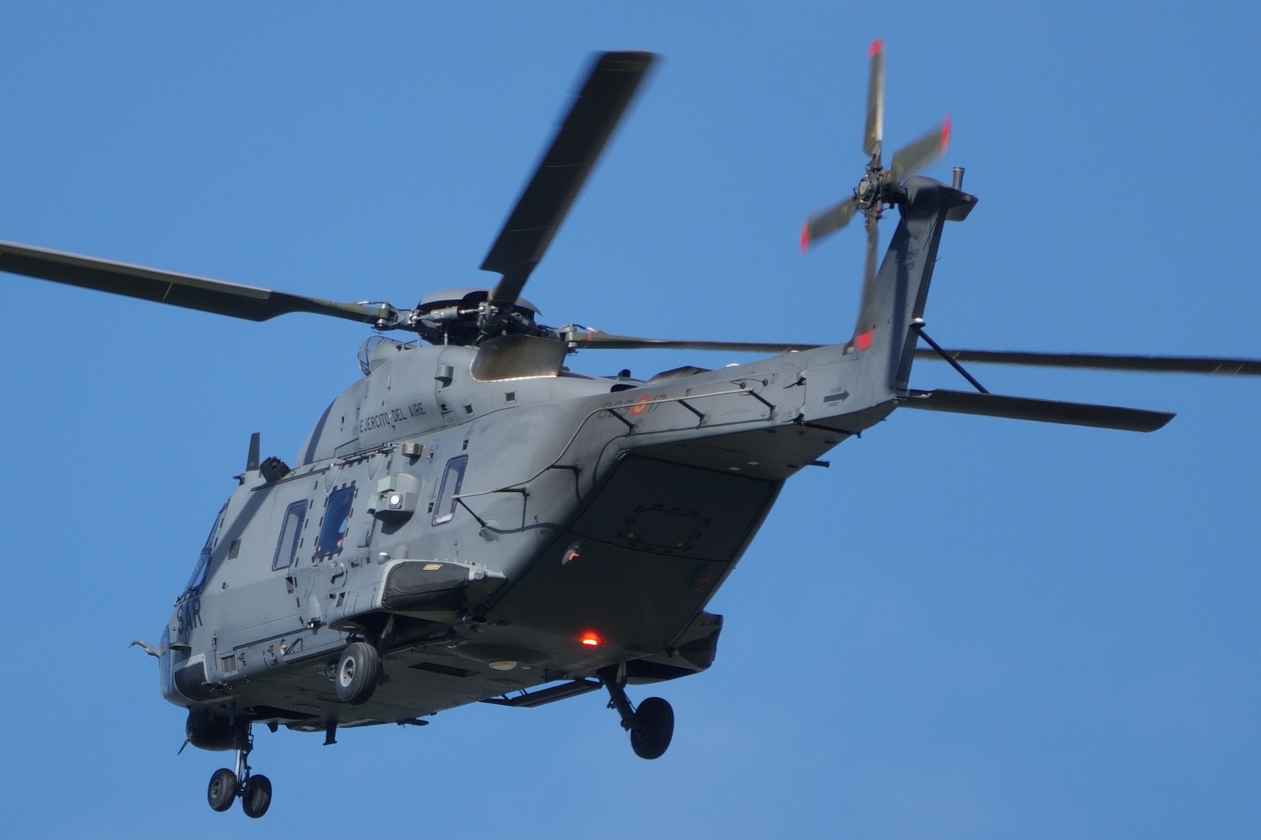 NH-90 (HD.29-18/803-18) perteneciente al 803 Escuadrón (Ala48) cuya principal es el Rol SAR. Se puede observar su grúa y torreta FLIR. Fotografía tomada en Cuatro vientos. (Imagen: Fco Javier Chao)