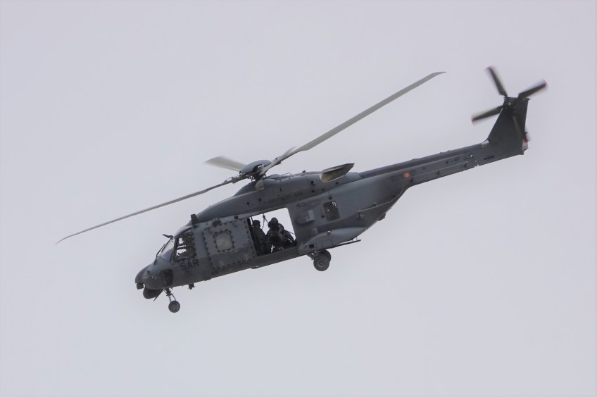 NH-90 (HD.29-17/803-17) perteneciente al Ala 48, se puede observar en su interior a los tiradores, preparándose para otra rotación de tiro (Imagen: Fco Javier Chao)