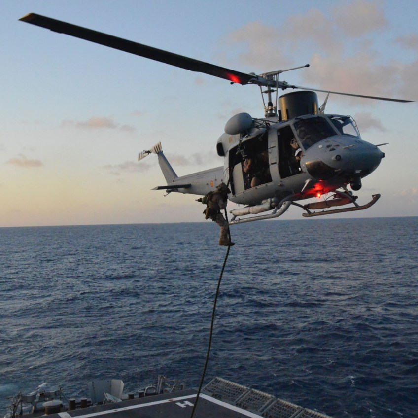 FfLlEsiXoAAOwua Publicado el 22/10/2022 a 1080 × 1080 en Operación Atalanta Haciendo Fast Rope desde el helicóptero AB-212 sobre la cubierta de la Fragata Numancia. (Imagen:@EUNAVFOR) Comparte esto:Entrada Compartir en WhatsApp (Se abre en una ventana nueva) WhatsApp Enviar un enlace a un amigo por correo electrónico (Se abre en una ventana nueva) Correo electrónico Imprimir (Se abre en una ventana nueva) Imprimir Me gusta Cargando...