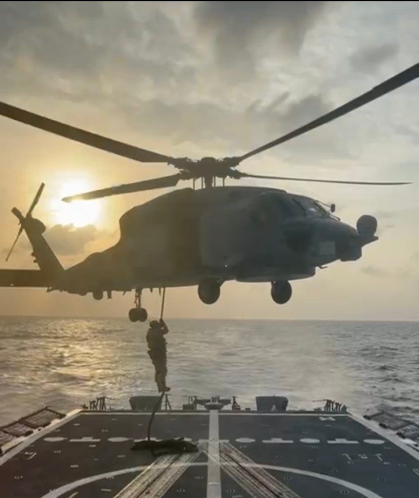 Realizando Fast Rope desde le SH-60B sobre la cubierta de la Fragata Santa Maria. (Imagen: @EUNAVFOR) Publicado el 14/01/2025 a 1170 × 1388 en Operación Atalanta Realizando Fast Rope desde le SH-60B sobre la cubierta de la Fragata Santa Maria. (Imagen: @EUNAVFOR) Comparte esto:Entrada Compartir en WhatsApp (Se abre en una ventana nueva) WhatsApp Enviar un enlace a un amigo por correo electrónico (Se abre en una ventana nueva) Correo electrónico Imprimir (Se abre en una ventana nueva) Imprimir Me gusta Cargando...