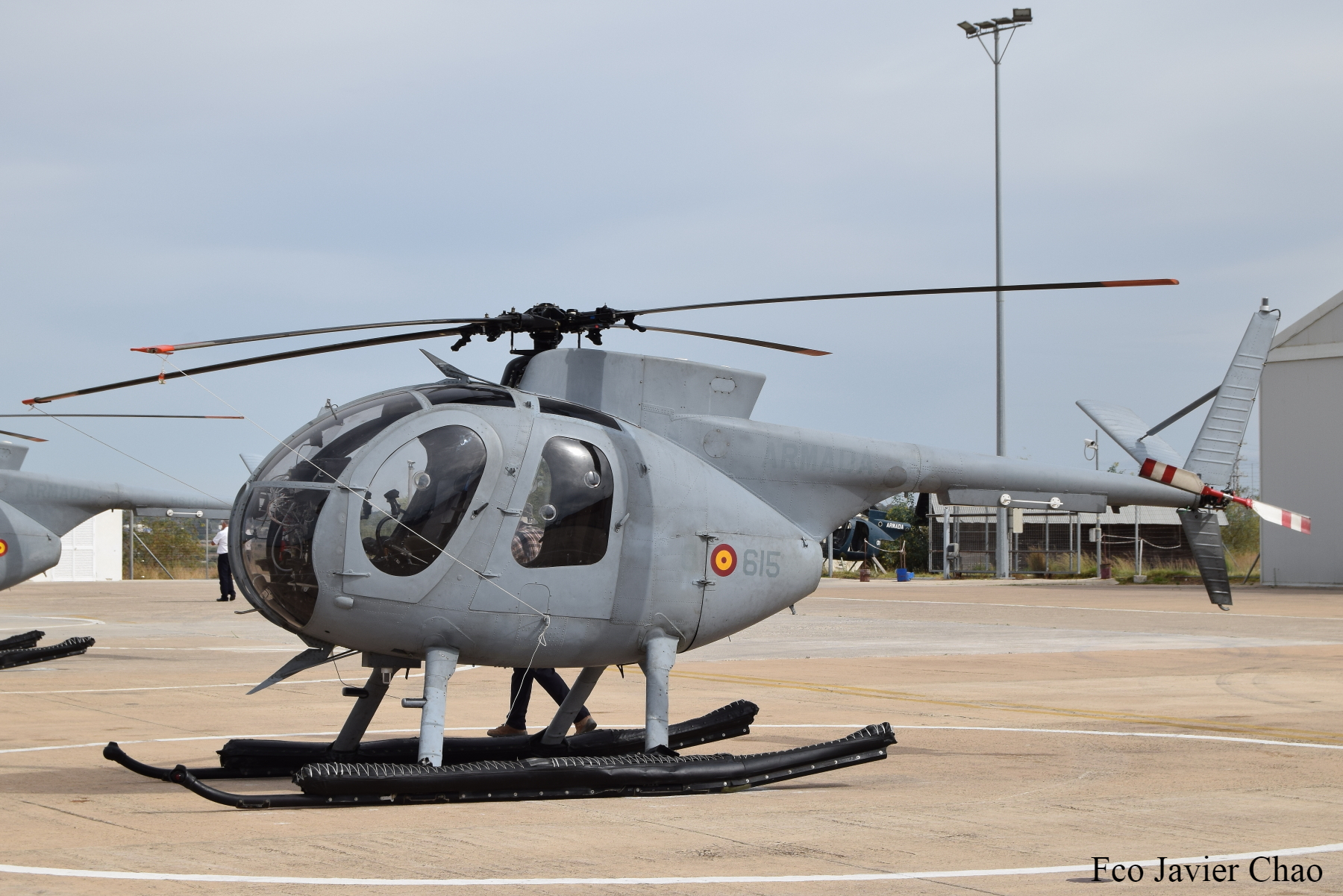 Huges H-500 (HS.13) perteneciente a la 6ª Escuadrilla con base en Rota, con unos 6 aparatos en la actualidad. Misión enseñanza, enlace y operativas.