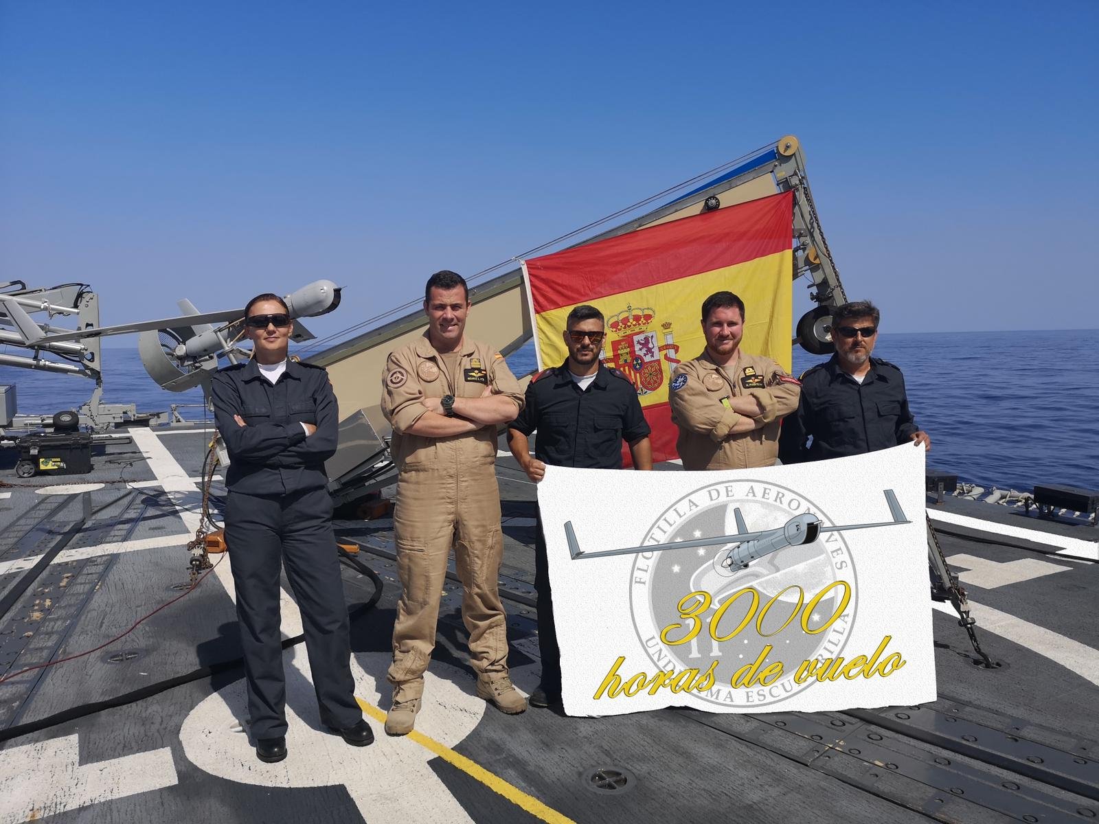 A finales de enero de 2021 como integrante de la UNAEMB de la Fragata «Reina Sofia» y dentro de la Operación Atalanta. El RPAS Scan Eagle alcanza las 3.000 horas de vuelo.