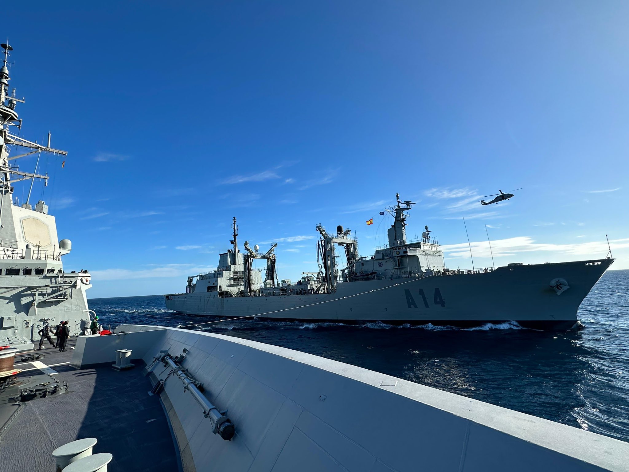 - 4 de noviembre el @EMADmde informa sobre la cifra de 2.700 reabastecimiento del BAC «Patiño» en un aprovisionamiento doble. Recordar que el citado buque embarca un helicóptero SH-60F.