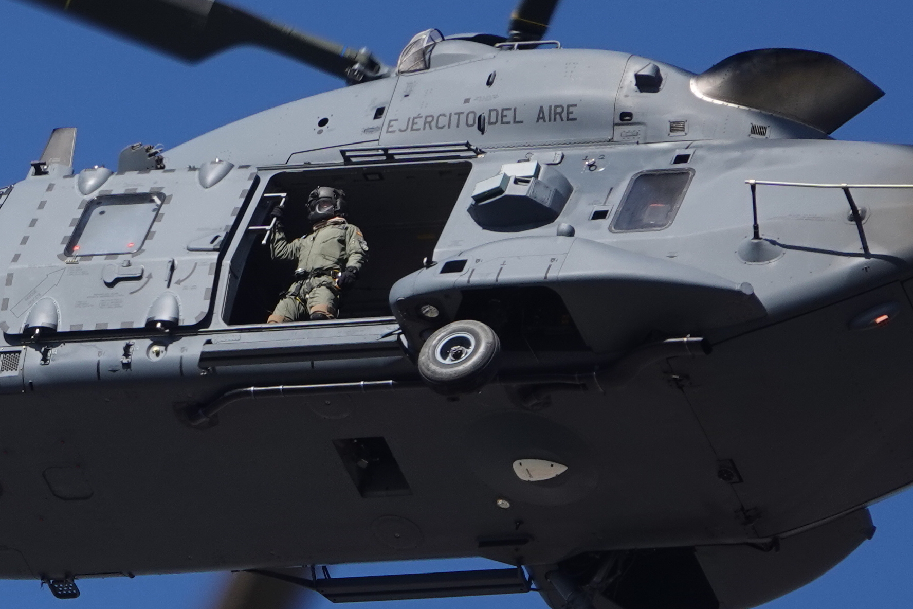 Supervisor de carga vigilando el exterior ante la aproximación a la cabecera del aeródromo. NH-90 (HD.29-17 / 803-17) (Foto: Fco javier Chao)