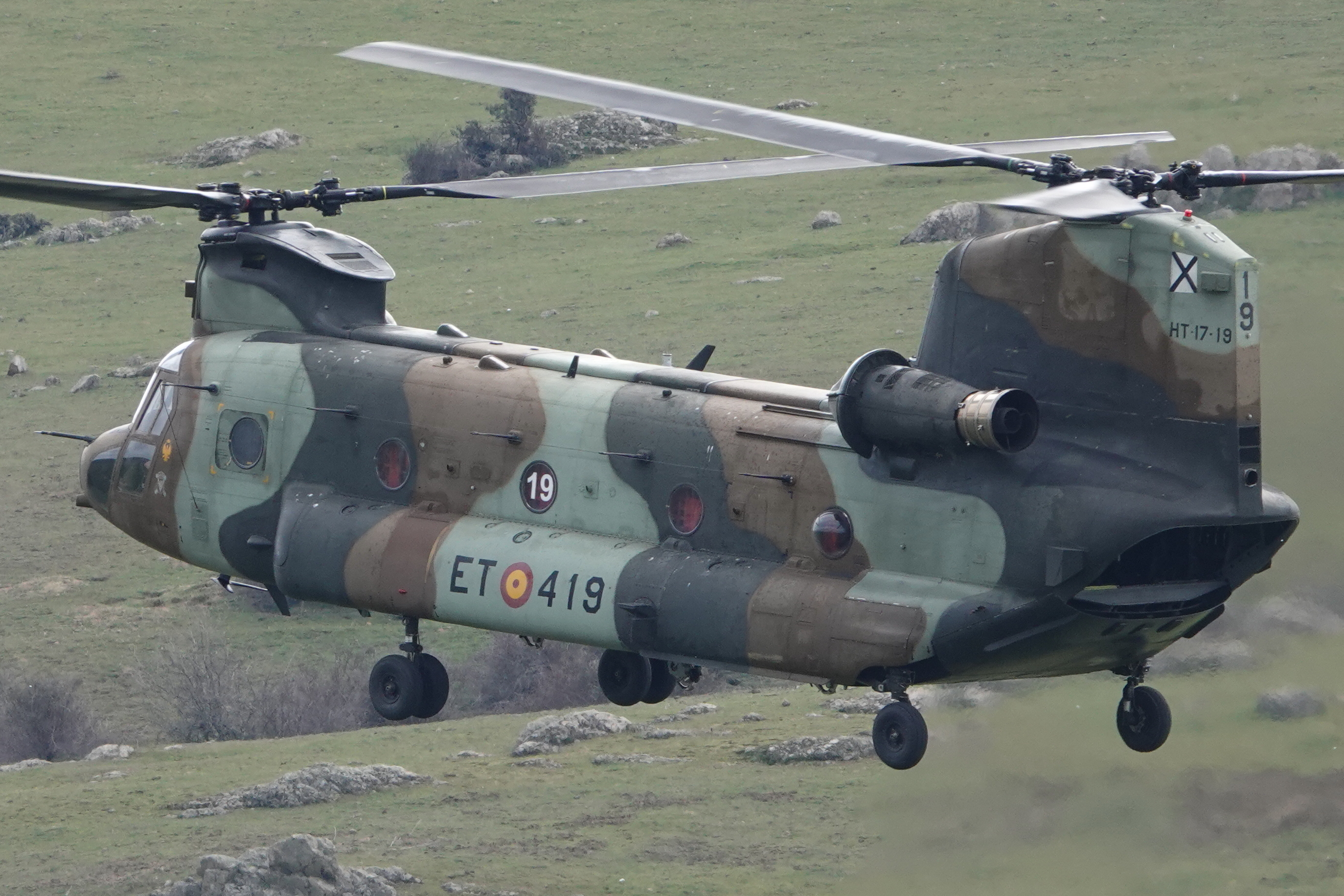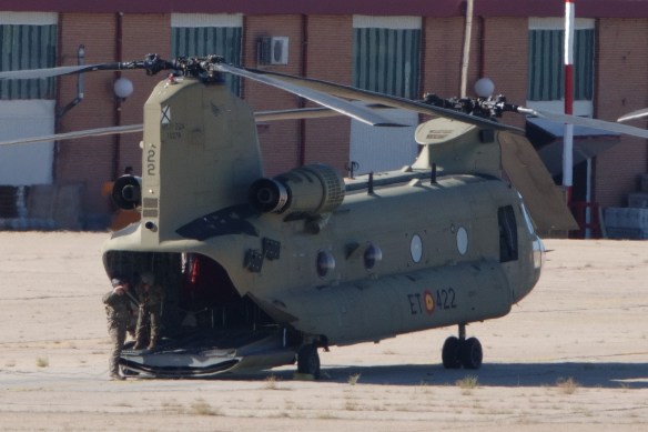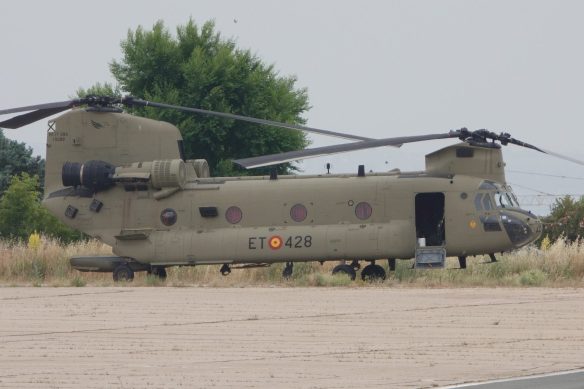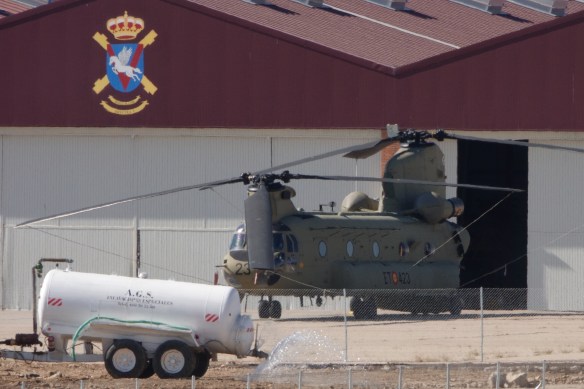 CH-47F Chinook: HT.17-21A 10277/ ET-421,HT.17-28A 10289 / ET-428, HT.17-32A 10293 / ET-432. Pertenecientes al BHELTRA V y con base en Colmenar Viejo. También han sido fotografiados los CH-47D que en su día se dieron de baja y que en la actualidad se encuentran en una de las zonas de plataforma. Estos son los CH-47D: HT.17-19 / ET-419, HT.17-02 / ET-402, HT.17-17 / ET-417, HT.17-09 / ET-409, HT.17-10 / ET-410.