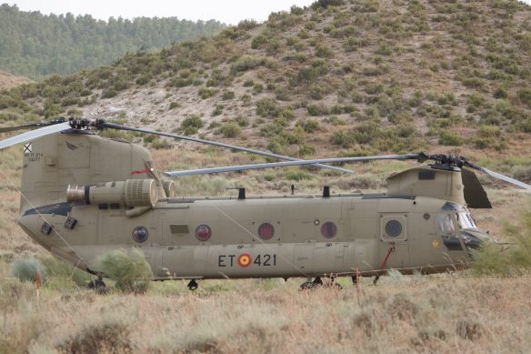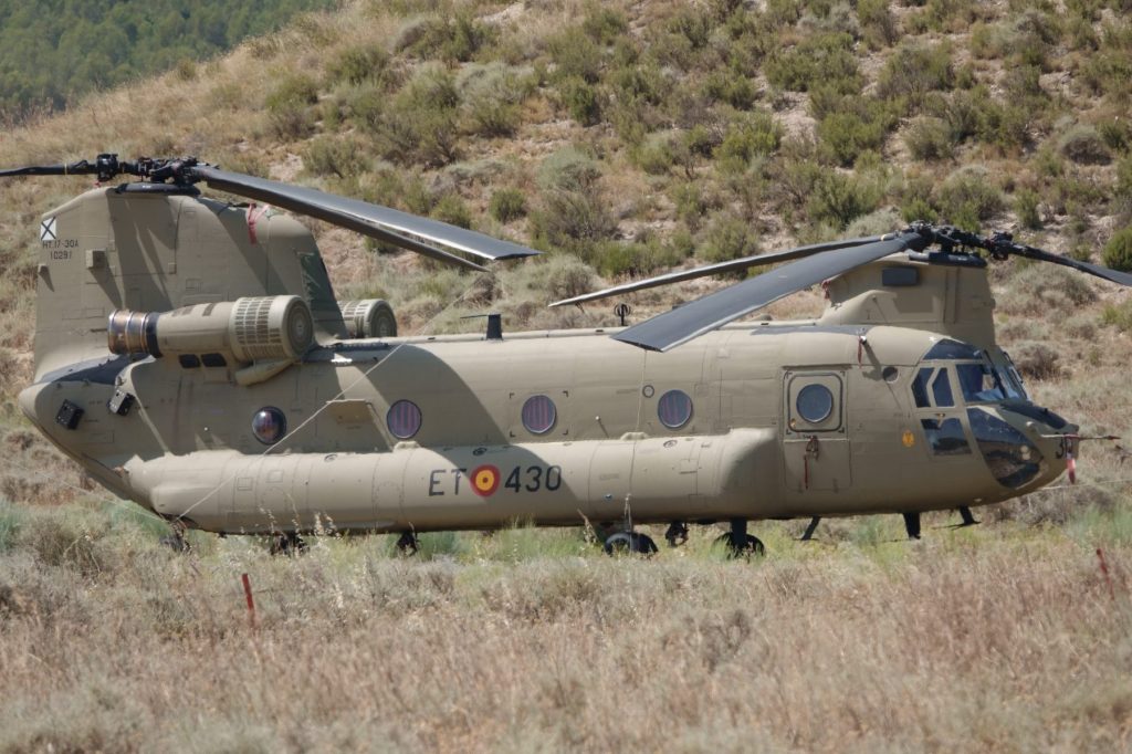 3 CH-47F Chinok; HT.17-21A/ET-421, HT.17-426A/ET-426, HT.17-430/ET-430. Pertenecientes al BHELTRA V con base en Colmenar Viejo.