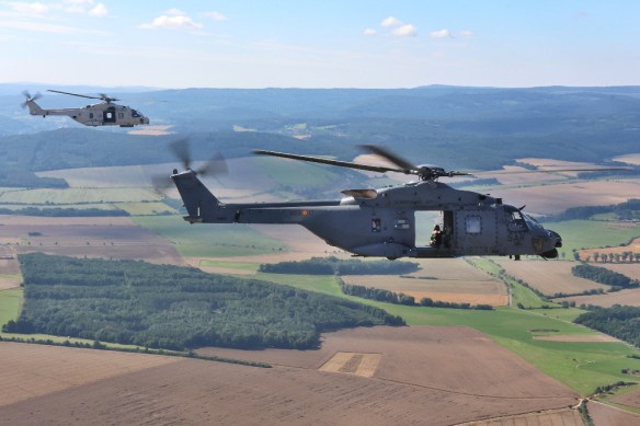 El NH-90 Español volando en formación junto al NH-90 Belga (Imagen: acr.mo.gov.cz)